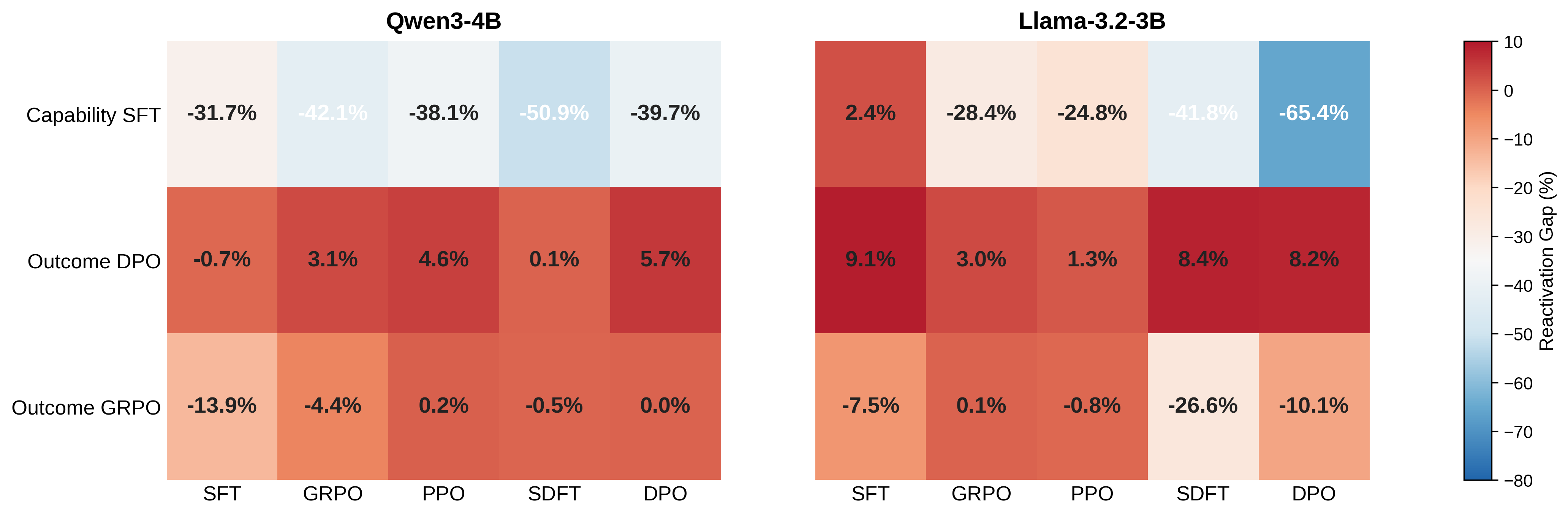 | Capability SFT | SFT | 47.3 ± 27.0 | 32.7 ± 12.3 | −14.7% | 12 |